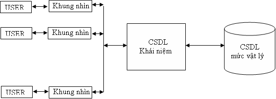 - Là cách nhìn, là quan niệm của từng người sử dụng đối với CSDL mức khái niệm. Sự khác nhau giữa khung nhìn và mức khái niệm thực chất là không lớn
