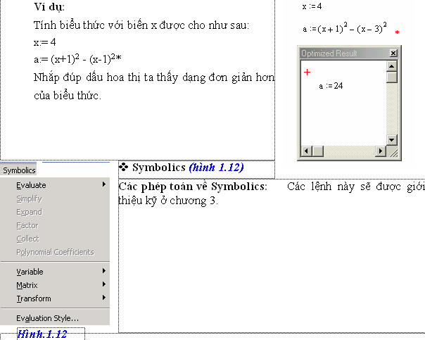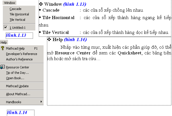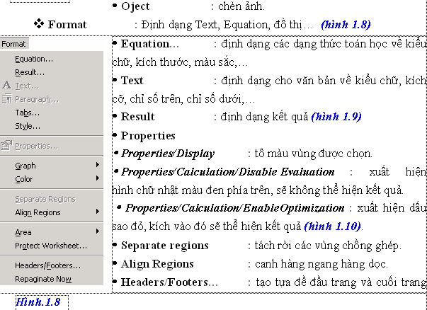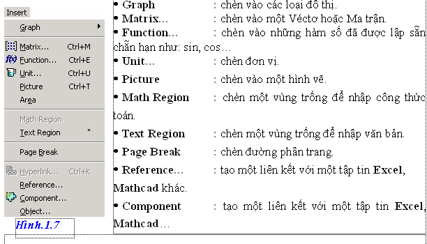 Insert : Trong menu này (hình1.7) Mathcad cho phép chèn các mục sau: