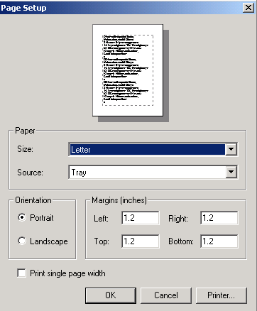 Để định dạng trang in, từ thanh menu chọn File/Page Setup… xuất hiện hộp thoại Page Setup… (hình 1.20).