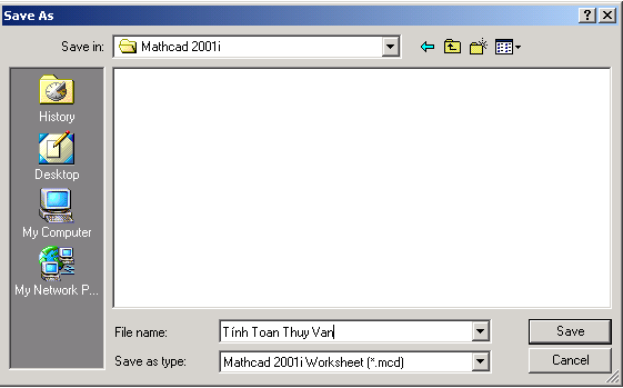 Mục Save in: chọn thư mục cần lưu trữ (hình 1.1) chọn thư mục Mathcad 2001i.