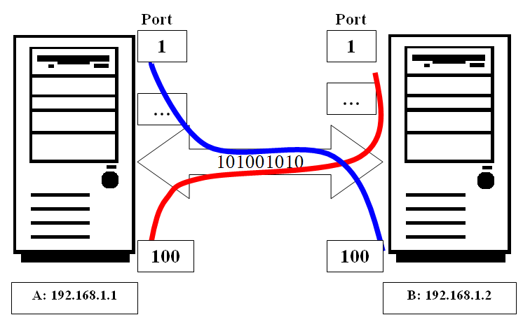 Mỗi ứng dụng trên máy B sẽ được gán một số hiệu (mà ta vẫn quen gọi là cổng : Port), số hiệu cổng này từ 1..65535. Khi ứng dụng trên máy A muốn gửi cho ứng dụng nào trên máy B thì chỉ việc điền thêm số hiệu cổng (vào trường RemotePort) vào gói tin cần gửi. Trên máy B, Các ứng dụng chỉ việc kiểm tra giá trị Cổng trên mỗi gói tin xem có trùng với số hiệu Cổng của mình (đã được gán – chính là giá trị Localport) hay không ? Nếu bằng thì xử lý, còn trái lại thì không làm gì (vì không phải là của mình).