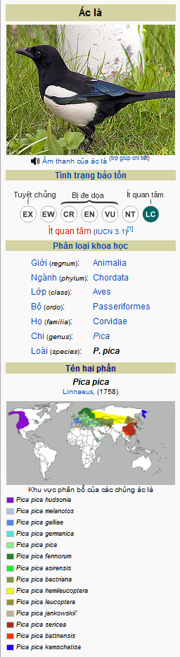 Tại Việt Nam, Pica pica là loài duy nhất của chi Pica có mặt nên cụm từ "ác là" cũng là tên gọi riêng của chính loài này.