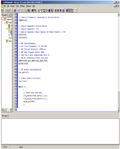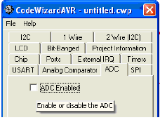 Ta check vào Use 8 bít, để ADC trả về giá trị 8 bít, và ta ADC dùng ngắt check vào Interrupt, về điện áp tham khảo AREF thì lấy điện áp của chân AREF của AVR được nối với 5V. Tần số ADC tùy các bạn thích nhanh hoặc chậm chọn giá trị phù hợp. Trong box Automatically Scan Inputs các bạn check vào Enabled. Vì chúng ta cần ADC 2 kênh, 1 kênh dùng biến trở để test ADC, một kênh từ LM35 đấu với 2 bit 0 và 1 của PORTA do đó chọn First 0, Last 1.