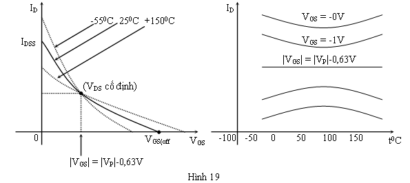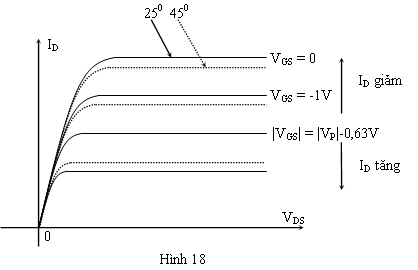 Do thông lộ tăng rộng theo nhiệt độ nên VGS(off) cũng tăng theo nhiệt độ. Thực nghiệm cho thấy tăng theo nhiệt độ với hệ số 2,2mV/10C.