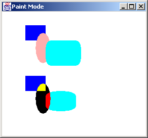 Chương trình sau sẽ minh hoạ tiện lợi của của việc sử dụng phương thức setXORMode(). Ở đây, chúng ta sử dụng phương thức setXORMode() để tô các hình đồ hoạ khác nhau, mà không đè lên các hình khác. Kết quả là, khi sử dụng mode XOR thì hiển nhiên là tất cả các hình đều hiển thị đầy đủ. Điều này có nghĩa là các hình mới không đè lên các hình củ. Thay vào đó, phần chung giữa các hình sẽ được hiển thị thành một màu khác. Nhưng khi không sử dụng mode XOR, hình mới hoàn toàn che khuất những hình trước đó.