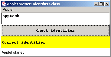 Khi người sử dụng nhập vào ô văn bản và click chuột vào nút 'Check identifier' applet phải kiểm tra xem từ có trong ô văn bản có phải là một từ khoá có trong java không.