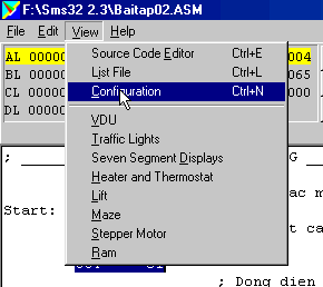 Khi có nhiều yêu cầu ngắt thuộc các loại ngắt khác nhau cùng lúc đòi hỏi CPU phục vụ thì CPU sẽ thực hiện xử lý yêu cầu ngắt theo thứ tự ưu tiên với nguyên tắc ngắt nào có mức ưu tiên cao nhất sẽ được CPU nhận biết và phục vụ trước. Ngắt được phân công ưu tiên như ổ đĩa thì được ưu tiên trước máy in...Trong chương trình mô phỏng này ngắt cứng chính là INT 02. Nó được tạo ra bởi một bộ định thời. Tín hiệu ngắt được phát ra một cách đều đặn, khoảng cách giữa hai ngắt có thể đặt trước trong Configuration Tab. Ðể chỉnh khoảng thời gian xuất hiện giữa hai lần tín hiệu ngắt INT 02, chọn View > Configuration.