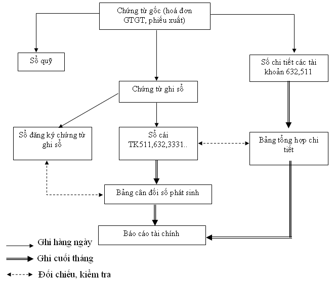 Nhược điểm: ghi chép còn trùng lặp , khối lượng ghi chép nhiều, việc đối chiếu số liệu vào cuối tháng nên không đảm bảo tính kịp thời của thông tin kế toán. Sơ đồ trình tự ghi sổ như sau: