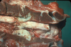 Brucellosis ở bò: Dịch thẩm xuât phía trong đốt sống và trong ống sống