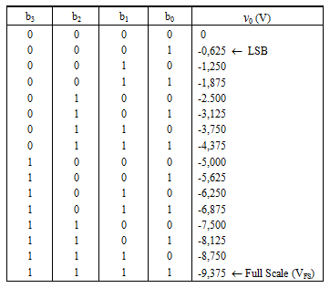Ta thấy v0 tỉ lệ với giá trị B của tổ hợp bit B = (b3 b2 b1 b0 )2 ⇒v0 = -B(Vr /24)