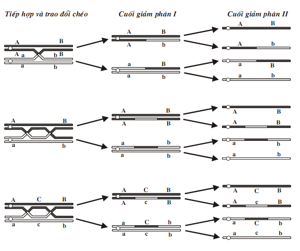 Trong quá trình vận động, bộ máy di truyền có thể thay đổi. Các phân tử DNA có thể tái tổ hợp với nhau, kết quả là sự sắp xếp các gen ở phân tử DNA của thế hệ sau có thể khác với thế hệ trước. Điều kiện đầu tiên để tái tổ hợp xảy ra là trên DNA phải có điểm đứt. Cơ chế của tái tổ hợp nói chung cũng chưa được xác định rõ ràng. Kiểu tái tổ hợp được nghiên cứu nhiều là tái tổ hợp xảy ra giữa các nhiễm sắc thể tương đồng trong quá trình phân bào giảm nhiễm. Các nhiễm sắc thể tương đồng bắt cặp hay tiếp hợp với nhau và có sự trao đổi chéo, kết quả tạo thành các giao tử có nhiễm sắc thể tái tổ hợp (giao tử tái tổ hợp). Trao đổi chéo giữa hai nhiễm sắc thể tương đồng có thể xảy ra một lần hoặc nhiều lần.