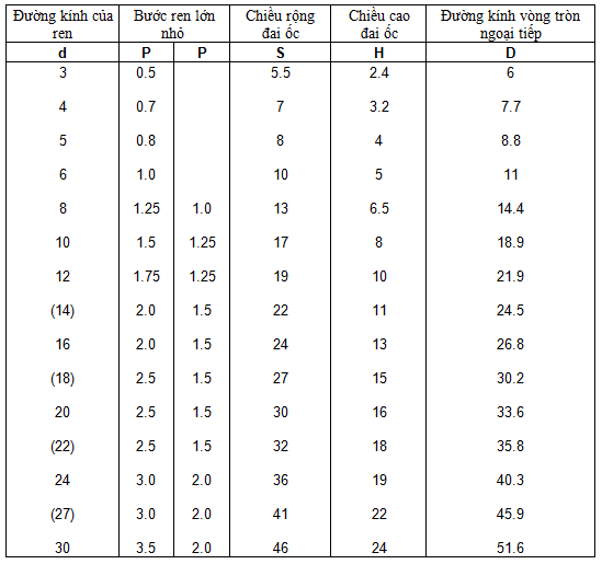 Ghi chú: Không nên dùng những đai ốc có kích thước trong ngoặc đơn.