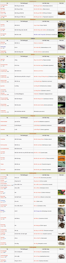 - Phân bộ Rắn (Serpentes), bao gồm các loài rắn;