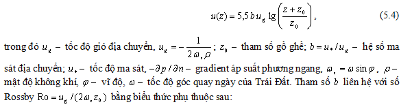 Trong lớp sát đất với độ cao dưới 100-200 m phụ thuộc của tốc độ gió u(z) vào độ cao z với độ chính xác đủ cho các mục đích thực tiễn được mô tả bằng công thức logarit