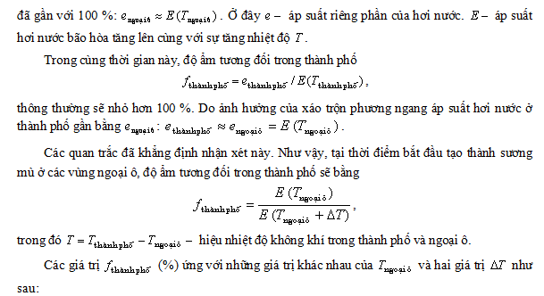 Vậy phải giải thích như thế nào về hiện tượng độ lặp lại của sương mù và một phần các đợt khói nặng ở những thành phố lớn đã giảm rất mạnh như các dẫn liệu không thể trối cãi trên đây đã cho thấy, rất trái ngược với những quan niệm truyền thống? Dễ nhận thấy rằng, sự tăng nhiệt độ không khí trong thành phố đóng vai trò quyết định trong hiện tượng này. Thật vậy, giả sử tình thế khí tượng như sau: độ ẩm tương đối của không khí ở các vùng ngoại thành