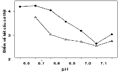 Hình 2.3. Mối quan hệ giữa cấu trúc của cơ thịt cá tuyết và pH