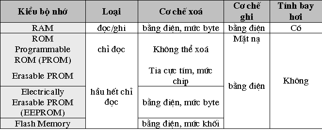 Bảng IV.1: Các kiểu bộ nhớ bán dẫn