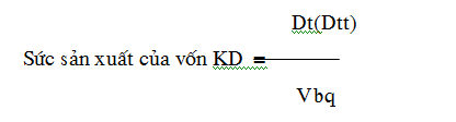 - Sức sản xuất của vốn kinh doanh: