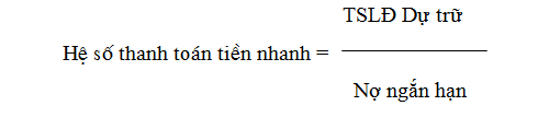 Dự trữ tồn kho là các loại tài sản khó chuyển đổi thành tiền hơn, trong tổng số tài sản lao động và dễ bị lỗ nhất nếu được bán. tỉ lệ này cho biết khái niệm hoàn trả các khoản nợ ngắn hạn không phụ thuộc vào việc bán tài sản dự trữ.