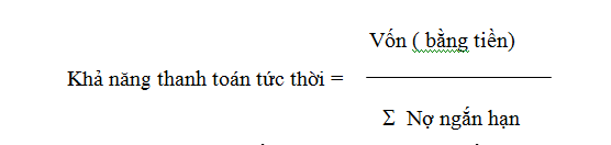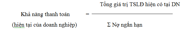 TSLĐ thông thường bao gồm tiền, các chứng khoán dễ chuyển nhượng(tương đương tiền),các khoản phải thu và dự trữ tồn kho. Nợ ngắn hạn thường bao gồm các khoản vay ngắn hạn ngân hàng và các tổ chức tín dụng, các khoản phải trả cho nhà cung cấp, các khoản phải trả khác. hệ số này là thước đo k/n thanh toán của doanh nghiệp. Nó cho biết các khoản của các chủ nợ ngắn hạn được trang trải bằng các tài sản có thể chuyển thành tiền trong một giai đoạn tương đương với thời hạn chuyển các khoản nợ đó. hệ số này càng lơn càng tốt.