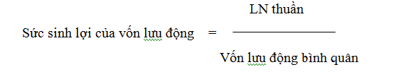 Chỉ tiêu này cho biết một đồng vốn lao động đem lại bao nhiêu đồng Dt thuần. Tỉ lệ này càng cao chứng tỏ hiệu quả sử dụng vốn lưu động của doanh nghiệp càng tăng. Phản ánh một đồng vốn lưu động bình quân bỏ ra giúp doanh nghiệp thu bao nhiêu đồng lợi nhuận.
