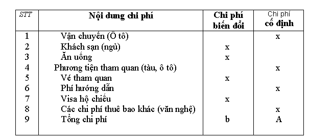 + Thứ nhất là chi phí: có rất nhiều cách phân loại chi phí khác nhau: từ chi phí biến đổi, chi phí cố định, chi phí biên tới chi phí cơ hội, chi phí dự phòng,…Thông thường các doanh nghiệp có hai hướng tác động chủ yếu là thay đổi mức chi phí (hoặc tổng chi phí) và thay đổi cơ cấu chi phí. Tiết kiệm chi phí luôn là mối quan tâm của các công ty lữ hành.