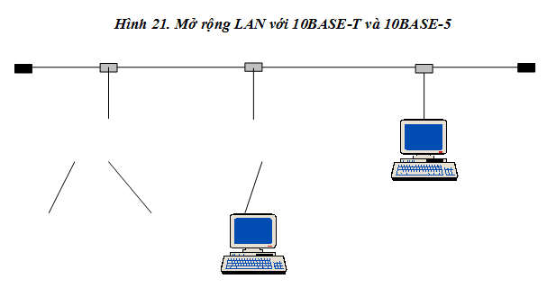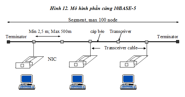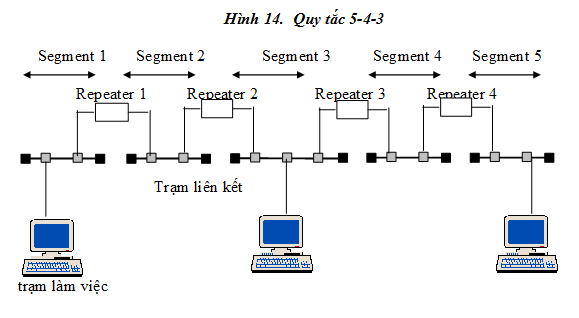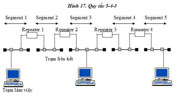 - Không được có quá 3 đoạn mạng có trạm làm việc. Các đoạn mạng không có trạm làm việc gọi là các đoạn liên kết.