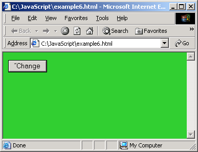 <HTML> <BODY BGCOLOR="lavender"> <FORM> <INPUT type = button name = text1 value="Change Color" onmousedown="(document.bgColor='aqua')" onmouseup="(document.bgColor='limegreen')" </FORM> </BODY> </HTML>Hình dưới đây hiển thị kết quả của ví dụ 7