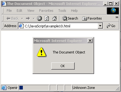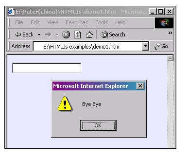 <HTML> <HEAD> <TITLE>Hello </TITLE> </HEAD> <BODY onLoad="alert('Hello')"> </BODY> </HTML>Kết quả :