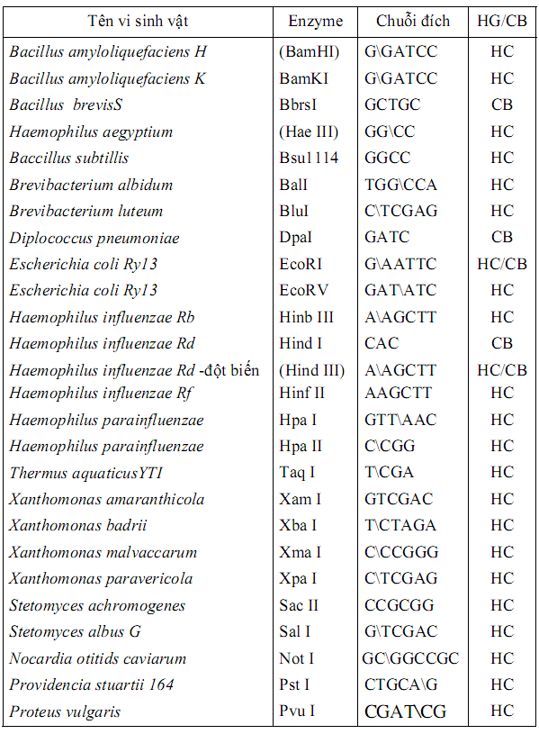 Các enzyme giới hạn (RE-Rectriction Enzyme)