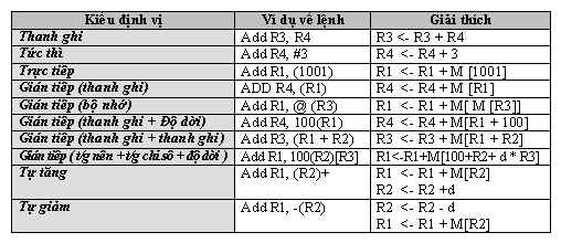 Bảng II.4 : Kiểu định vị của một bộ xử lý có kiến trúc phần mềm kiểu thanh ghi đa dụng.