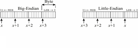 - Định vị kiểu Little-Endian: byte thấp nhất được đặt trong ô nhớ có địa chỉ thấp nhất (Intel, DEC