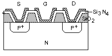 Giữa lớp kim loại nối ra các cực và lớp SiO2 là một lớp mỏng chất Nitrua Silic (Si3N4) - từ 40nm đến 650nm - Dữ liệu được nạp bằng cách áp một điện thế dương giữa cực G và S (khoảng 20 đến 25V trong 100ms). Do sự khác biệt về độ dẫn điện, electron tích trên bề mặt giữa 2 lớp SiO2 và Si3N4 , các electron này tồn tại khi đã ngắt nguồn và làm thay đổi trạng thái dẫn điện của transistor. Bây giờ nếu áp một điện thế âm giữa cực G và S ta sẽ được một lớp điện tích trái dấu với trường hợp trước. Như vậy hai trạng thái khác nhau của Transistor có thể thiêt lập được bởi hai điện thế ngược chiều nhau và như vậy các tế bào nhớ được ghi và xóa với 2 xung điện trái dấu nhau.