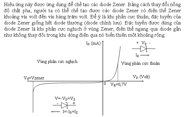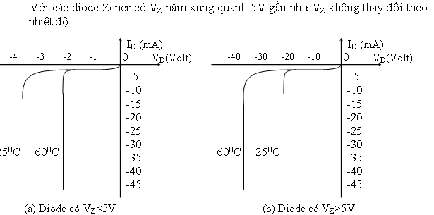 - Với các diode Zener có điện thế Zener VZ < 5V thì khi nhiệt độ tăng, điện thế Zener giảm.