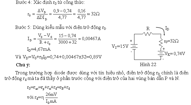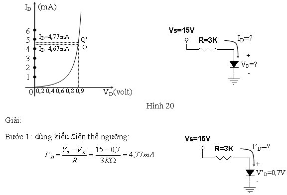 Theo ví dụ trước, với kiểu mẫu điện thế ngưỡng ta có VD=0,7V và ID=4,77mA.