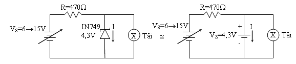 Khi chưa mắc tải vào, thí dụ nguồn VS=15V, thì dòng qua zener là: