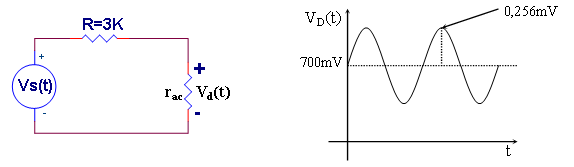 VD(t) = 700mV + 0,256 Sin ωt (mV).