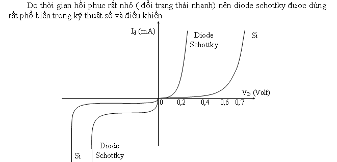Ta đã thấy ảnh hưởng của thời gian hồi phục (tức thời gian chuyển mạch) lên dạng sóng ngõ ra của mạch chỉnh lưu. Để rút ngắn thời gian hồi phục. Các hạt tải điện phải di chuyển nhanh, vùng hiếm phải hẹp. Ngoài ra, còn phải tạo điều kiện cho sự tái hợp giữa lỗ trống và điện tử dễ dàng và nhanh chóng hơn. Đó là nguyên tắc của diode schottky.