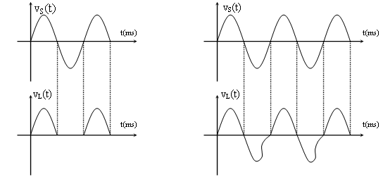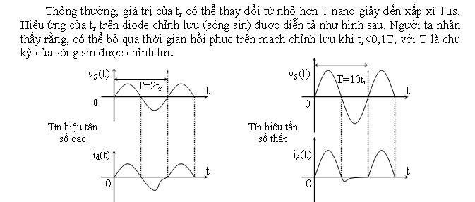 Đáp ứng trên chỉ đúng khi tần số của nguồn xoay chiều VS(t) thấp-thí dụ như điện 50/60Hz, tức chu kỳ T=20ms/16,7ms-khi tần số của nguồn tín hiệu lên cao (chu kỳ ở hàng nano giây) thì ta phải quan tâm đến thời gian chuyển tiếp từ bán kỳ dương sang bán kỳ âm của tín hiệu.