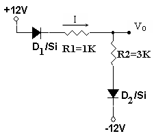 - I2Tính dòng điện I1 và VO trong mạch sau (dùng kiểu mẫu lý tưởng và điện thế ngưỡng của diode)