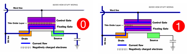 Hình V.3: Minh hoạ hai trạng thái của một bit nhớ trong thẻ nhớ