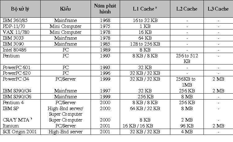 - Ngoài ra, trong một số hệ thống (PowerPC G4, IBM S/390 G4, Itanium của Intel) còn có tổ chức cache mức ba (L3 cache), đây là mức cache trung gian giữa cache L2 và một thẻ bộ nhớ.