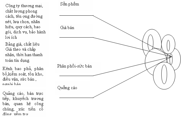 Ta có thể mô hình hoá bằng hình ảnh marketing - mix như sau: