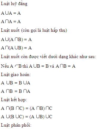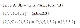Hợp: Hợp của A và B là tập hợp gồm tất cả các phần tử thuộc ít nhất một trong hai