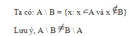 Hiệu: Hiệu của tập hợp A với tập hợp B là tập hợp tất cả các phần tử thuộc A nhưng