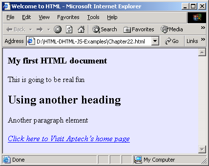 "Using headings". Thêm vào tiêu đề mức ba <H3> dòng chữ “My First HTML document” - Thêm một đoạn vào trang theo định dang dưới: