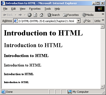 Những phần tiêu đề được hiển thị to và in đậm hơn để phân biệt chúng với các phần còn lại của văn bản. Chúng ta cũng có thể hiển thị phần tiêu đề một trong sáu kích thước từ H1 đến H6. Tất cả những gì chúng ta làm là định rõ kích thước H1, H2…Trình duyệt chú trọng đến cách hiển thị