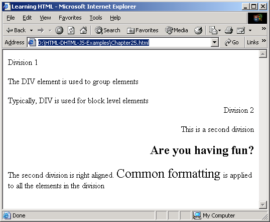 <SPAN STYLE = font-size:25; Color:blue>Common formatting </SPAN>is applied to all the elements in the division