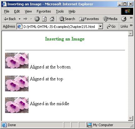 <IMG ALIGN=MIDDLE SRC=Flowers.jpg> Aligned in the middle</P>