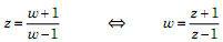 Với cách đổi biến như trên, miền nằm trong vòng trong đơn vị của mặt phẳng z tương ứng với nửa trái của mặt phẳng w.